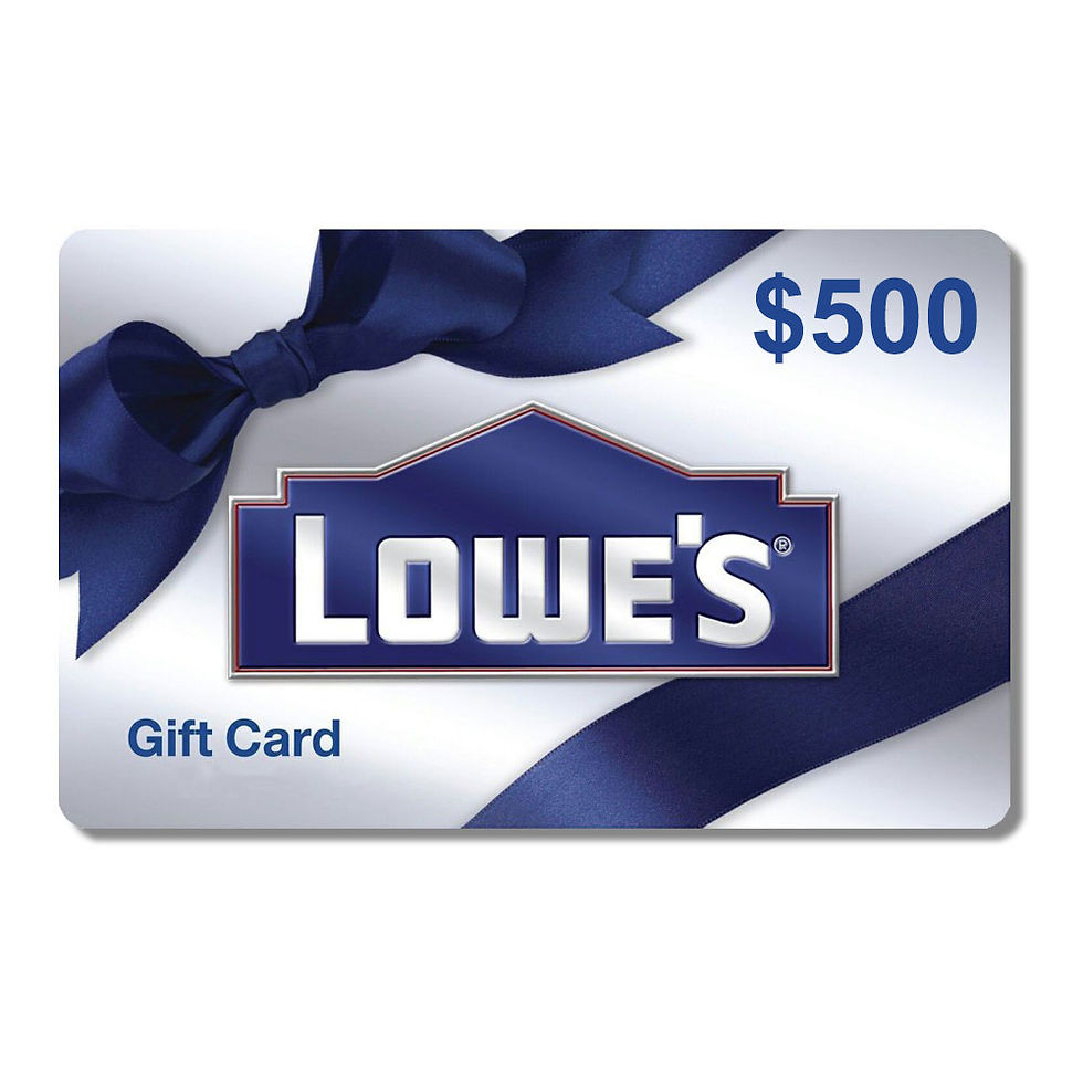 SOLD OUT! $500 Lowes Gift Card Raffle 23-060Joe GradyApr 15, 20231 min readUpdated: Apr 17, 2023This raffle is for a $500 Lowes Gift Card75 Chances$10 a chanceGood Luck, and thank you for your support!BY PURCHASING CHANCES, YOU AGREE TO ALL RULES LISTED HERE.PURCHASE A CHANCE